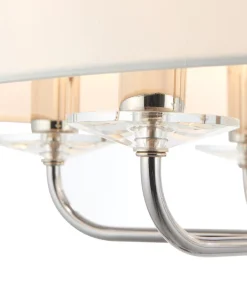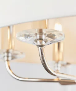 Bright nickel plated arms with crystal detailing. Fitting includes narrow, faux silk shade in vintage white colour.
