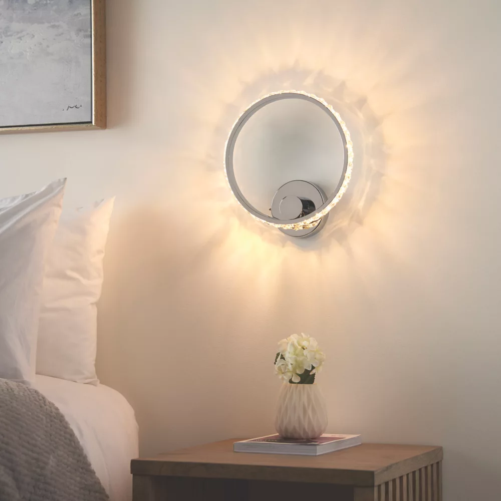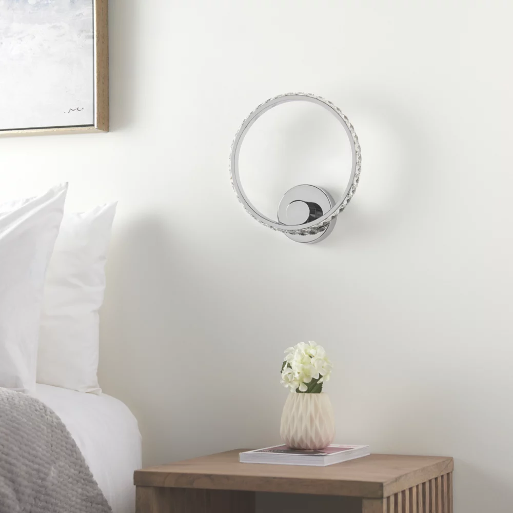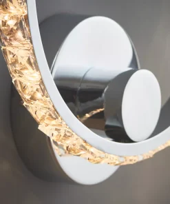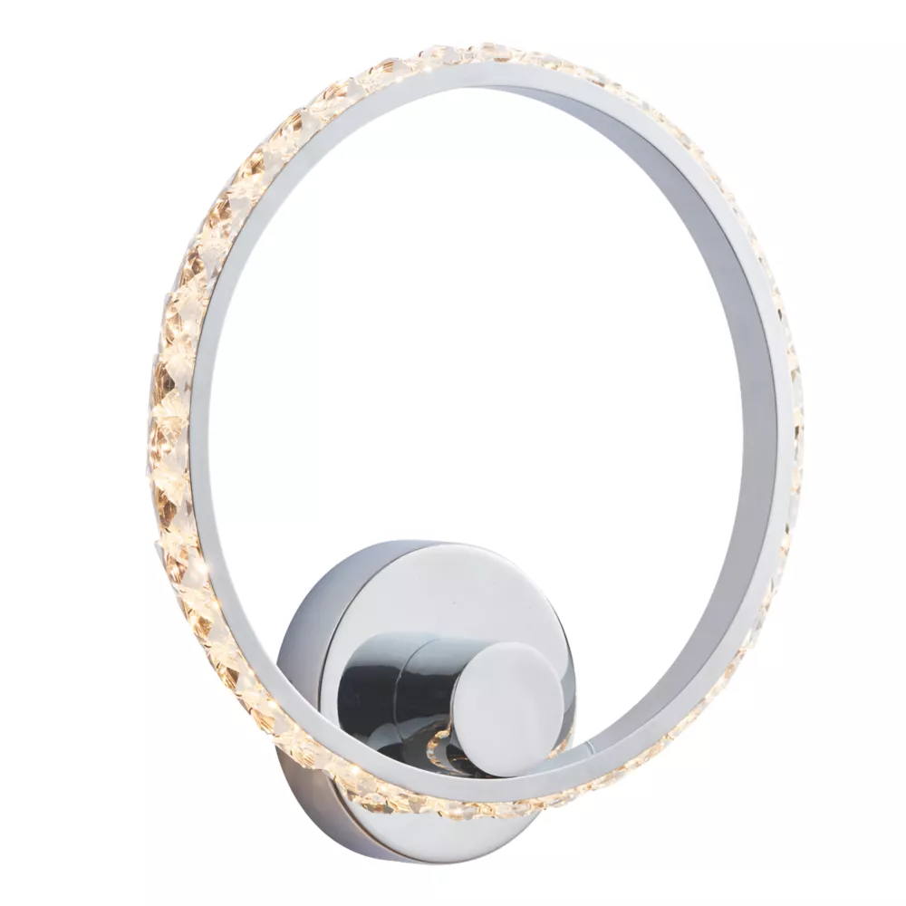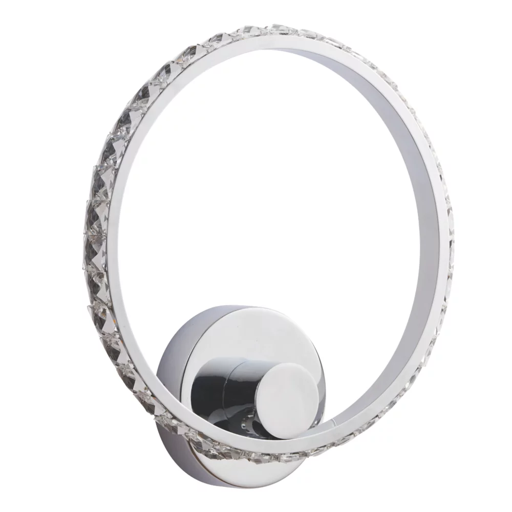 Chrome plate ring with integrated LED, finished with clear glass crystal beads.