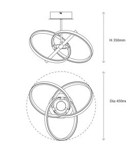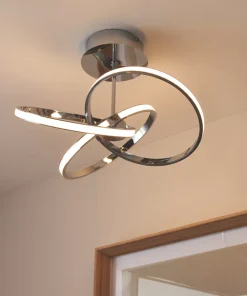 Remi chrome contemporary 3-lamp ceiling light with adjustable rings. Contains Integrated dimmable LED. Ideal for low ceilings.