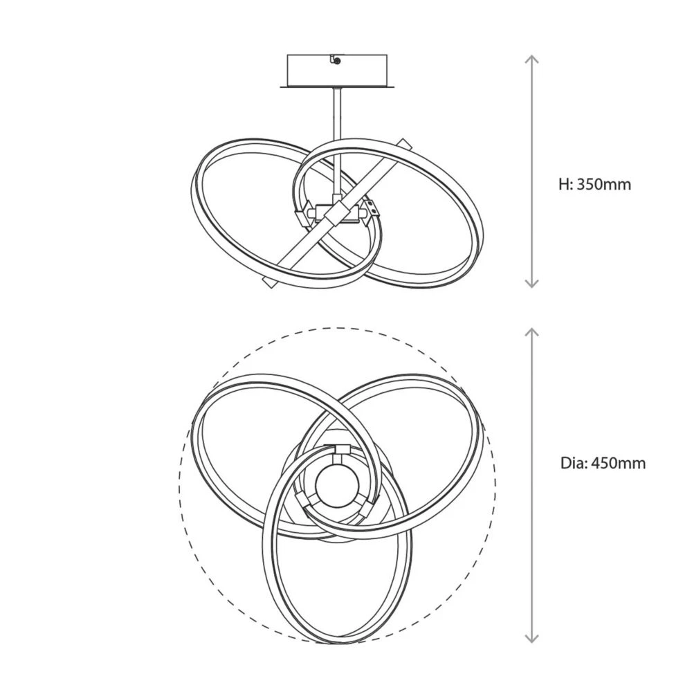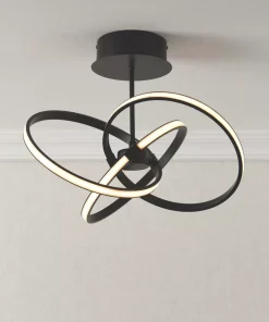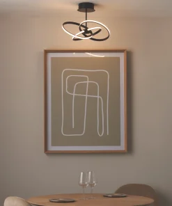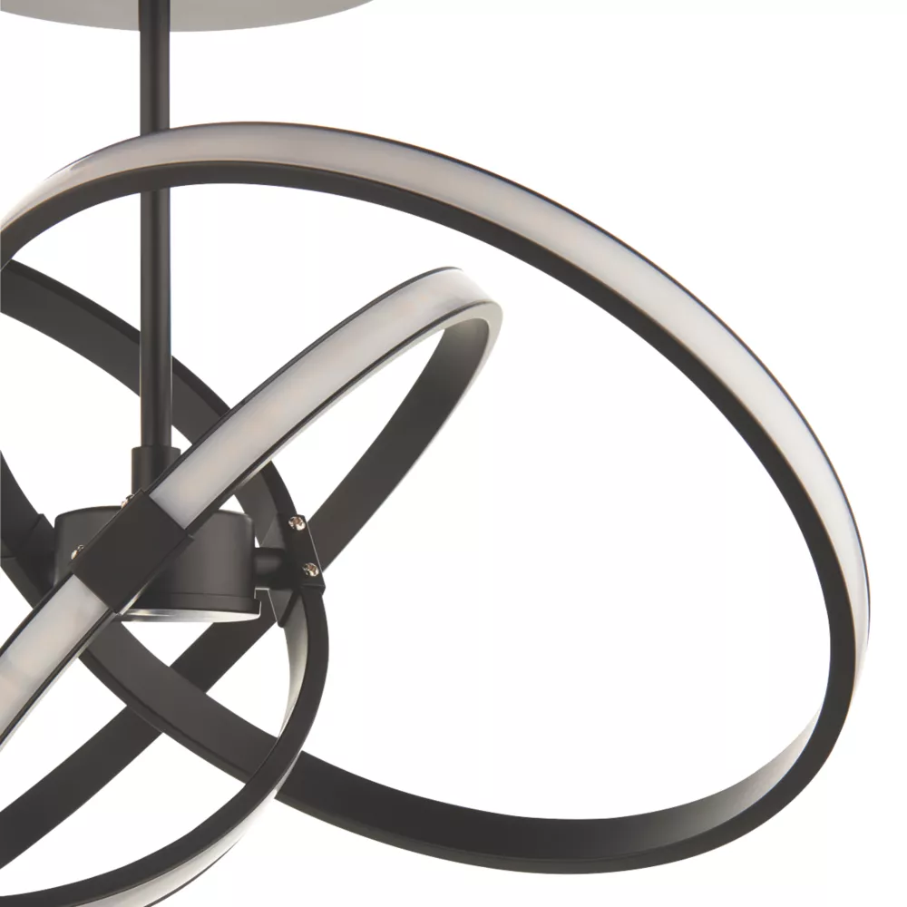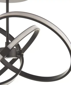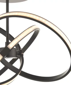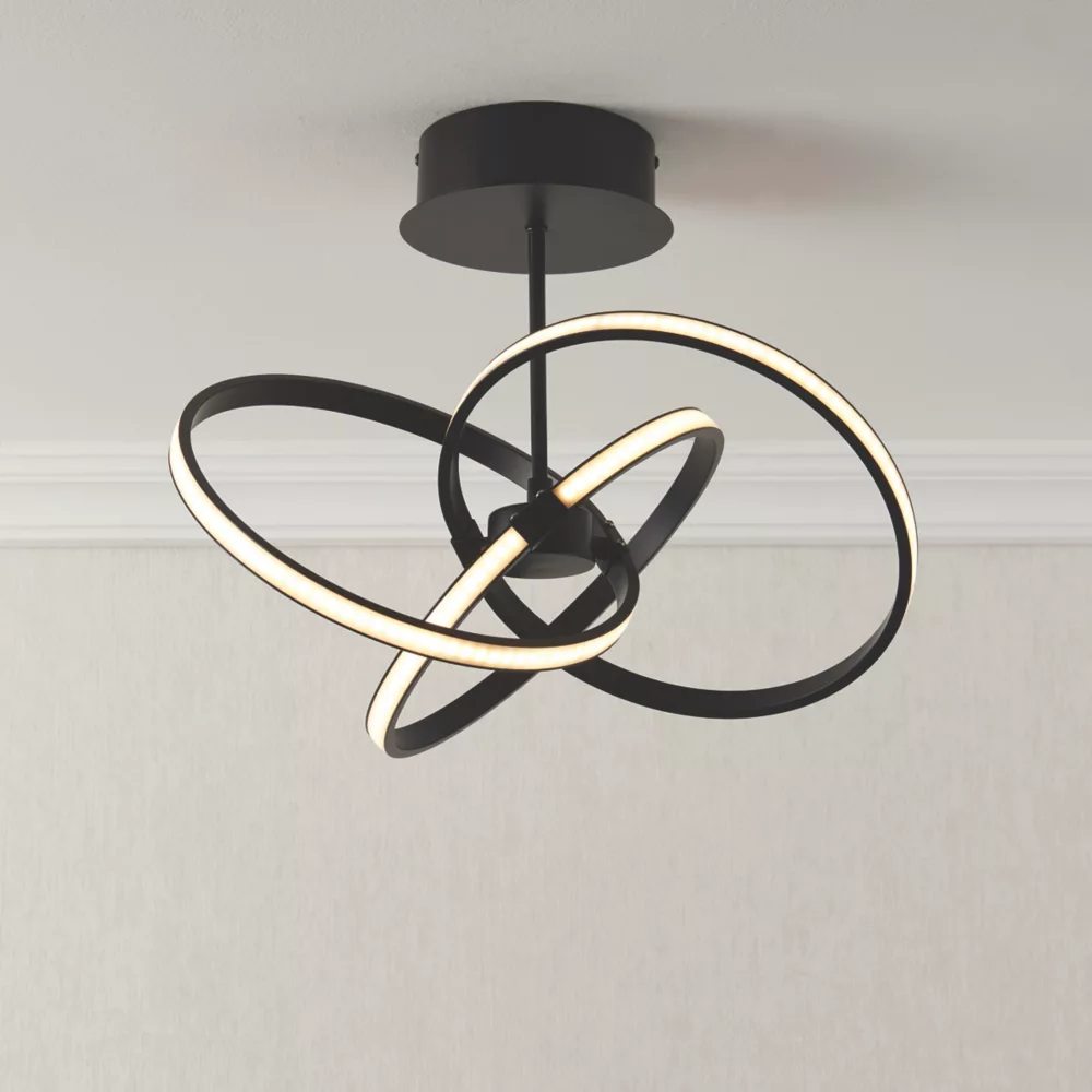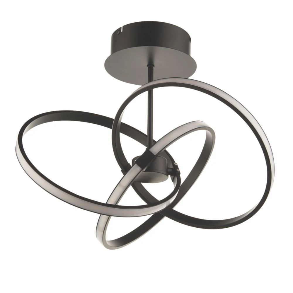 Remi black contemporary 3-lamp ceiling light with adjustable rings. Contains Integrated dimmable LED. Ideal for low ceilings.