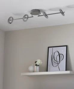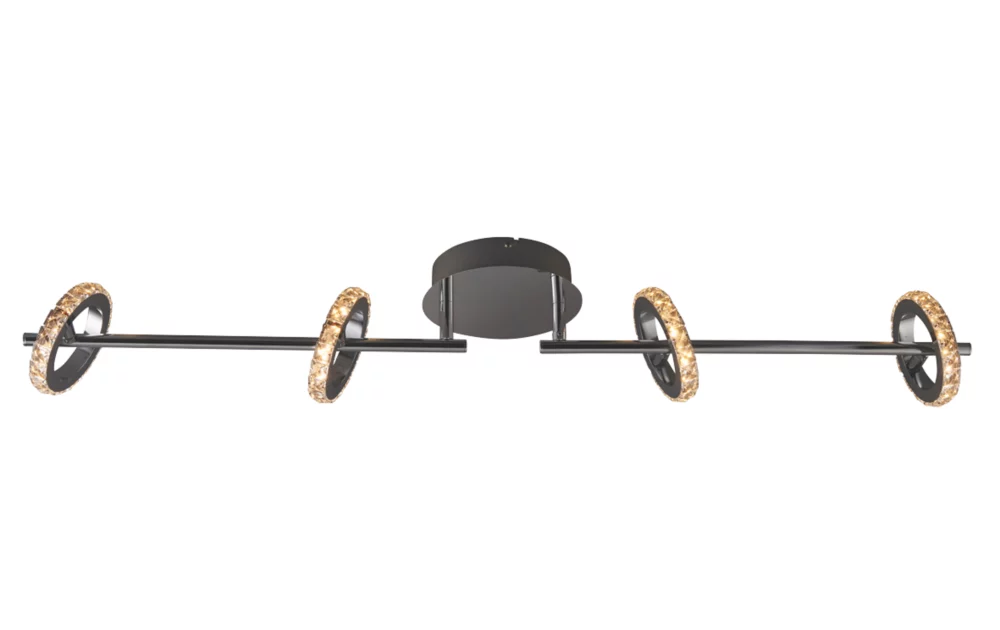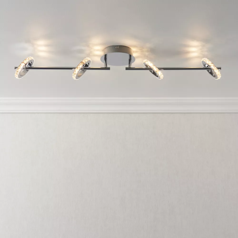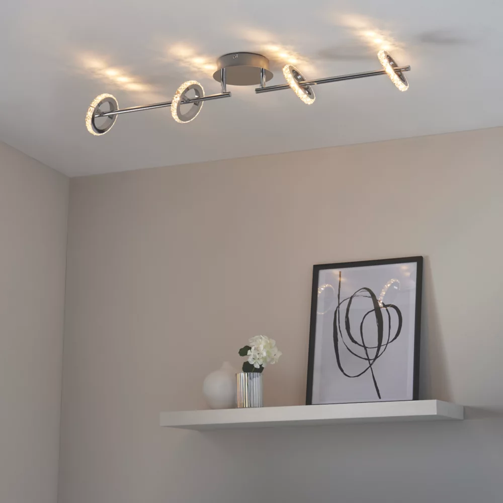 Contemporary 4-lamp spotlight with adjustable rings. Ideal for low ceilings.