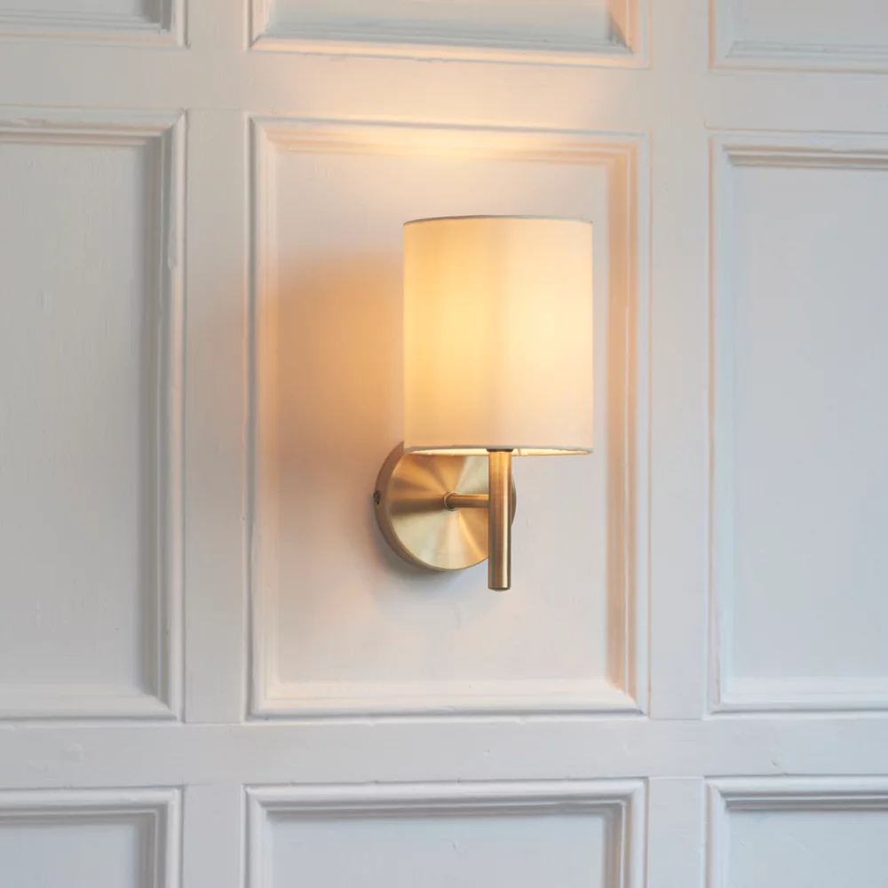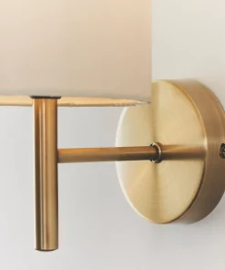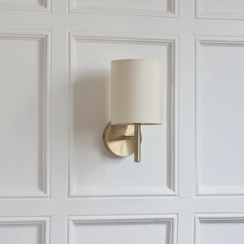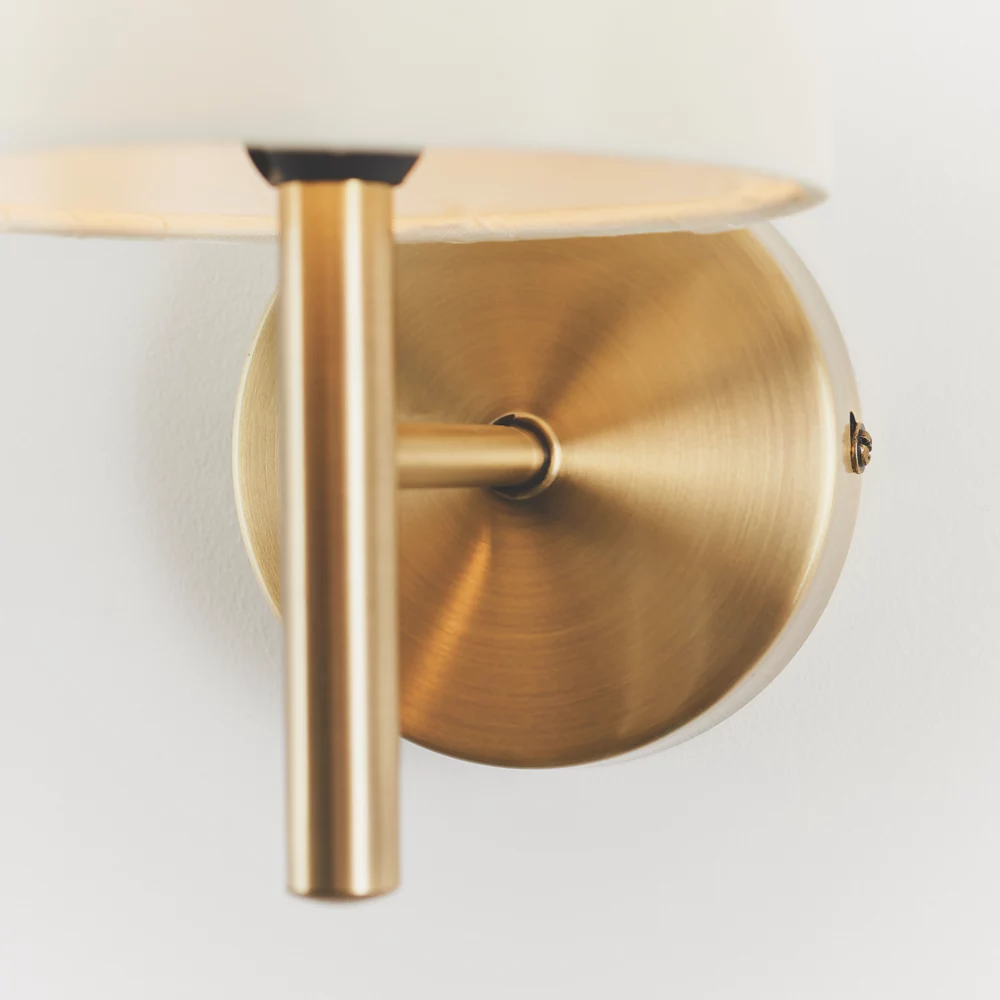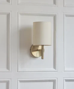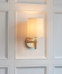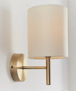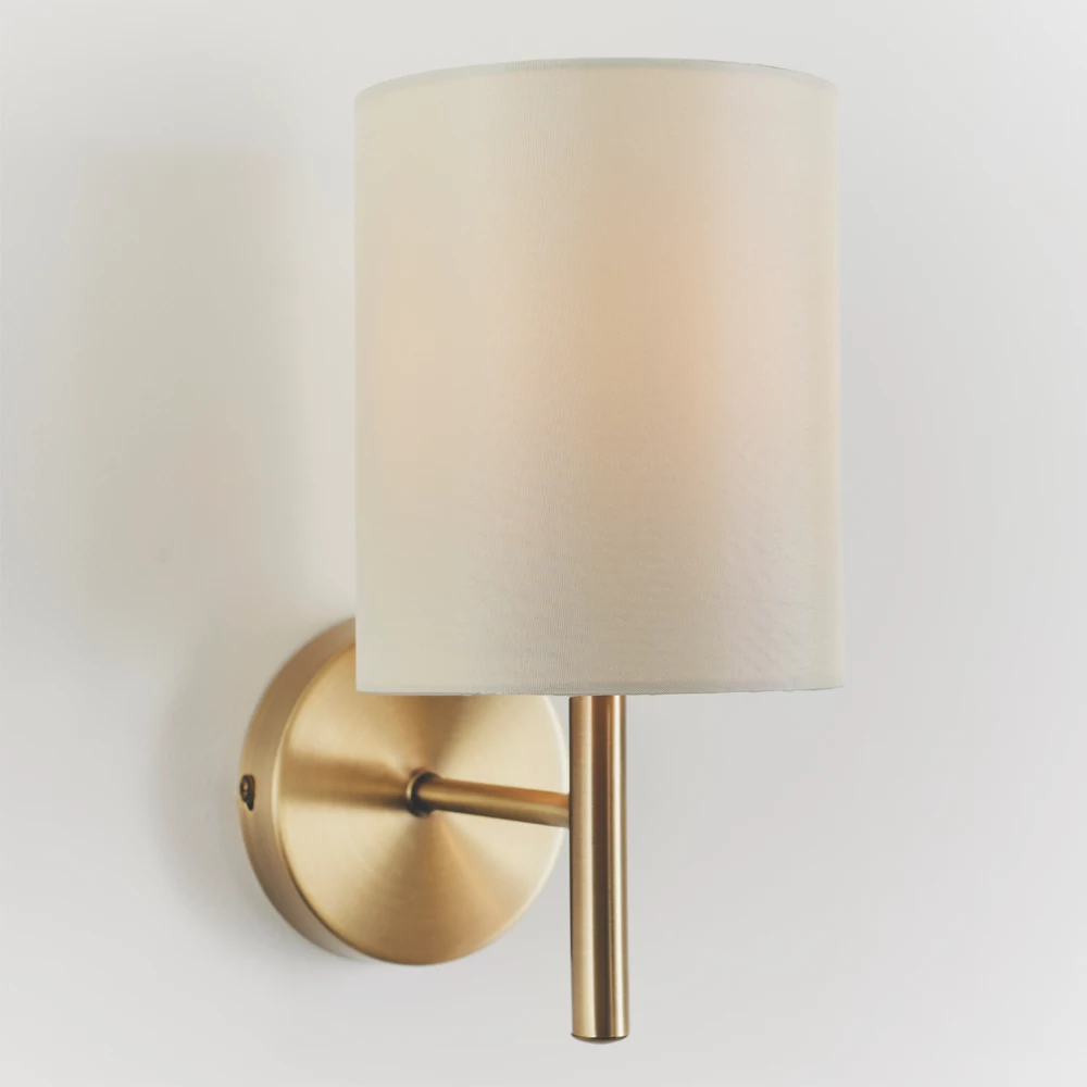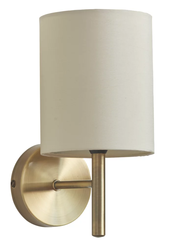Wall uplight with a fabric shade. Steel body, decorative design.