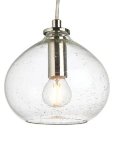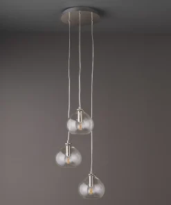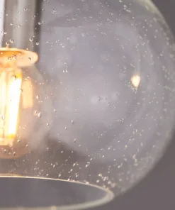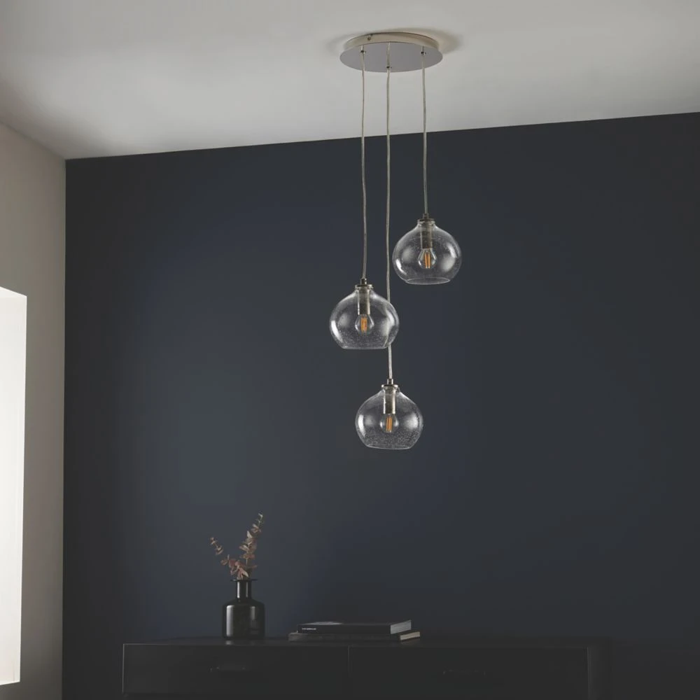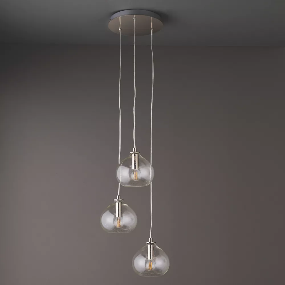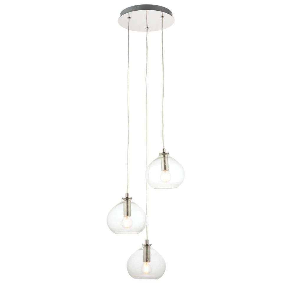 3-Light cluster pendant with clear glass and subtle bubble effect.