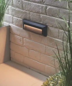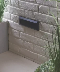LED outdoor guide light constructed from plastic. Horizontal, rectangular wall downlight suitable for lighting pathways and driveways.