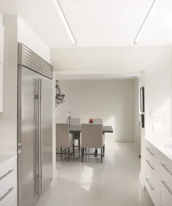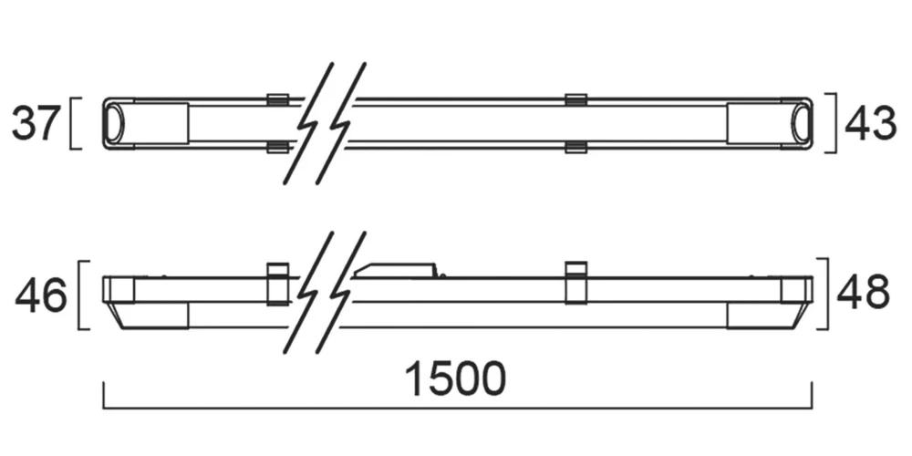 Metal body and plastic diffuser. Ideal replacement for traditional fluorescent T8 battens. Ease of installation through push-in design of the housing.